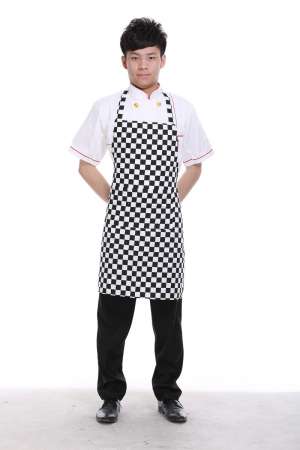 餐廳廚師圍裙掛脖黑色長袖酒店工作服定做中